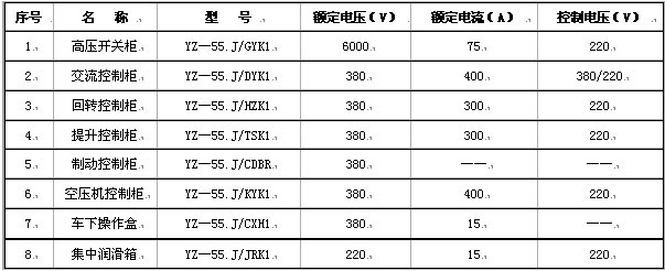 牙輪鉆機YZ—35B.J型成套電控設(shè)備技術(shù)參數(shù):
